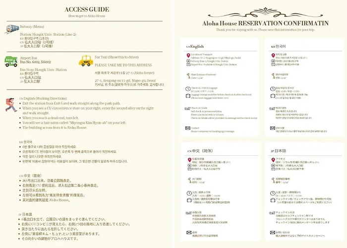 Oltre ai servizi di self-catering come un angolo cottura attrezzato, l'Appartamento Aloha House offre agli ospiti anche una zona pranzo. La fermata dell'autobus Changjeon Hyundai Hometown si trova abbastanza vicino all'Appartamento Aloha House, mentre la stazione della metropolitana Gwangheungchang è a 350 metri.